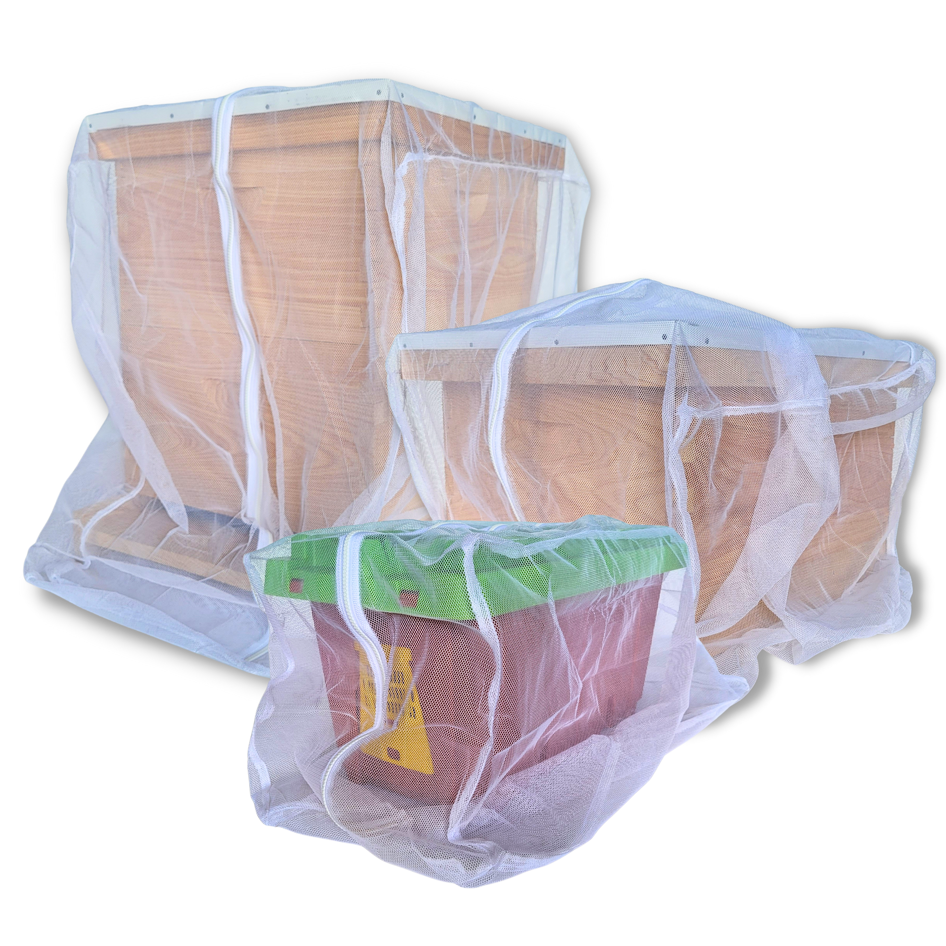 Our gusseted bags are carefully designed to provide a perfect fit for your complete hive, allowing extra room for telescoping covers and bottom boards. The bag's shape mirrors that of the hive, ensuring a seamless and secure fit.